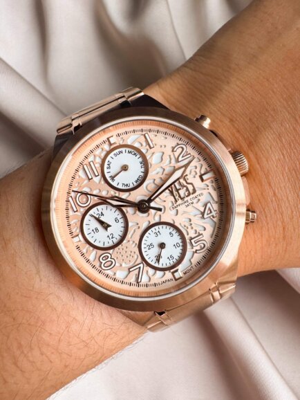 RELOJ YESS PARA MUJER ORO ROSA MULTIFUNCIONAL Y24107-05