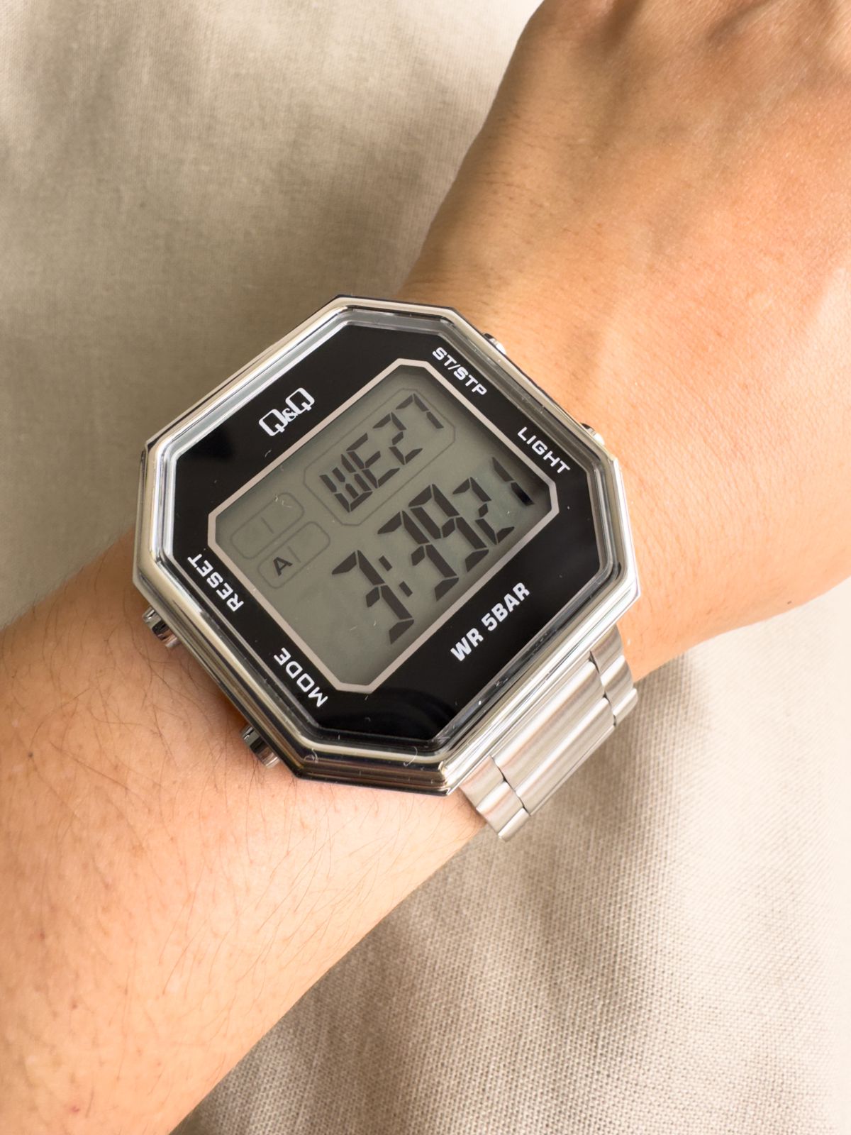 Q y Q ORIGINAL unisex, incluye estuche, resistencia al agua: 5 BAR Water resist (NO SUMERGIBLE) 12 meses de garantía, funciones: Hora digital, Hora militar 24 horas, Cronometro, Alarma, Fecha, Luz , ancho de la caja 3.9 cm, largo de la caja 3,6 cm, Ancho del pulso 2.1 cm, Material del reloj: caja aleación y pulso en acero inoxidable