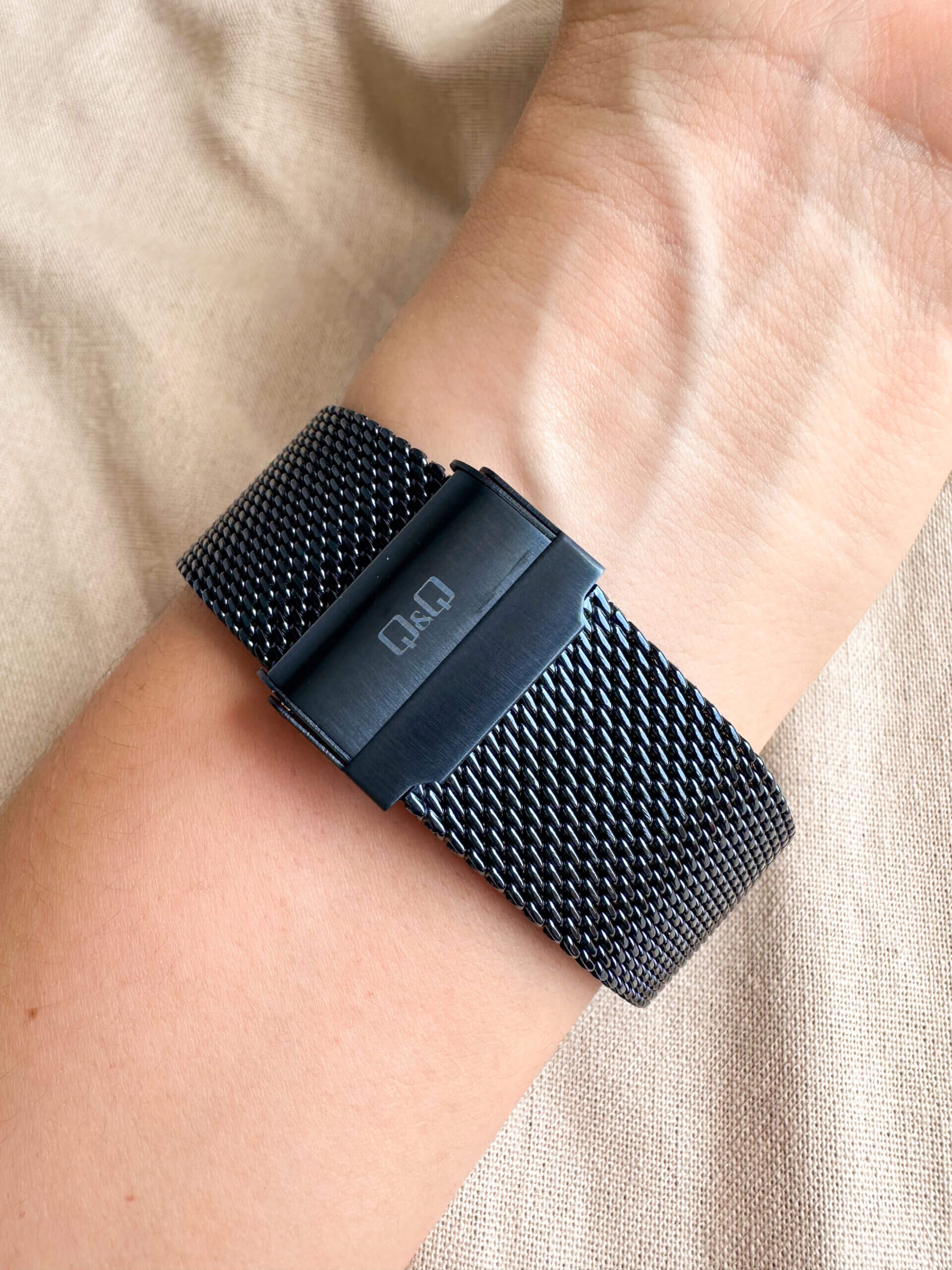 Q y Q ORIGINAL unisex, incluye estuche, resistencia al agua: Water resist (NO SUMERGIBLE) 12 meses de garantía, funciones: Hora digital, segudos y fecha, ancho de la caja 3.5 cm largo de la caja 4 cm Ancho del pulso 2.3 cm Material del reloj: caja acero horneado y pulso en acero inoxidable