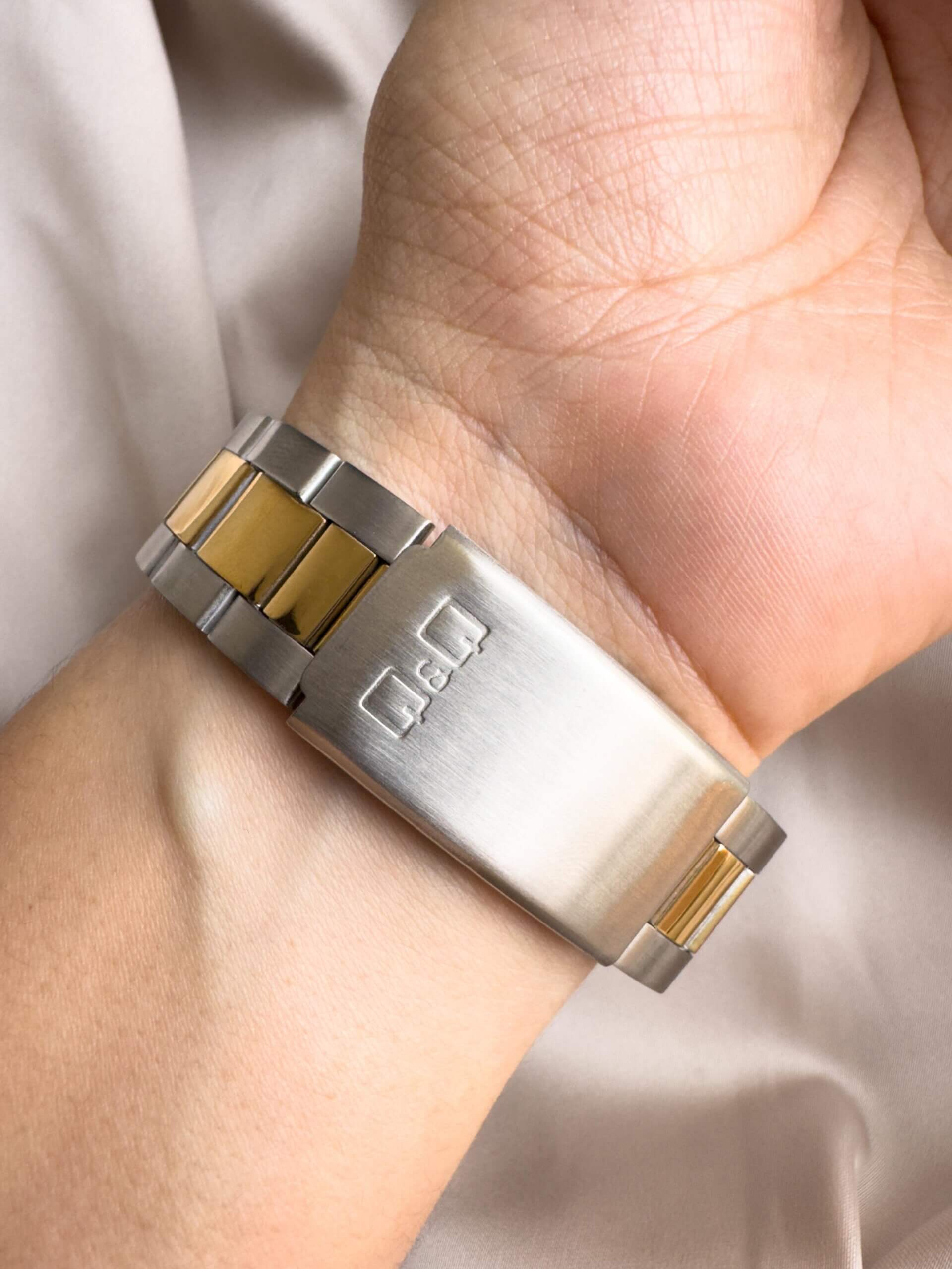 Reloj Q&Q Unisex negro y oro rosa con calendario