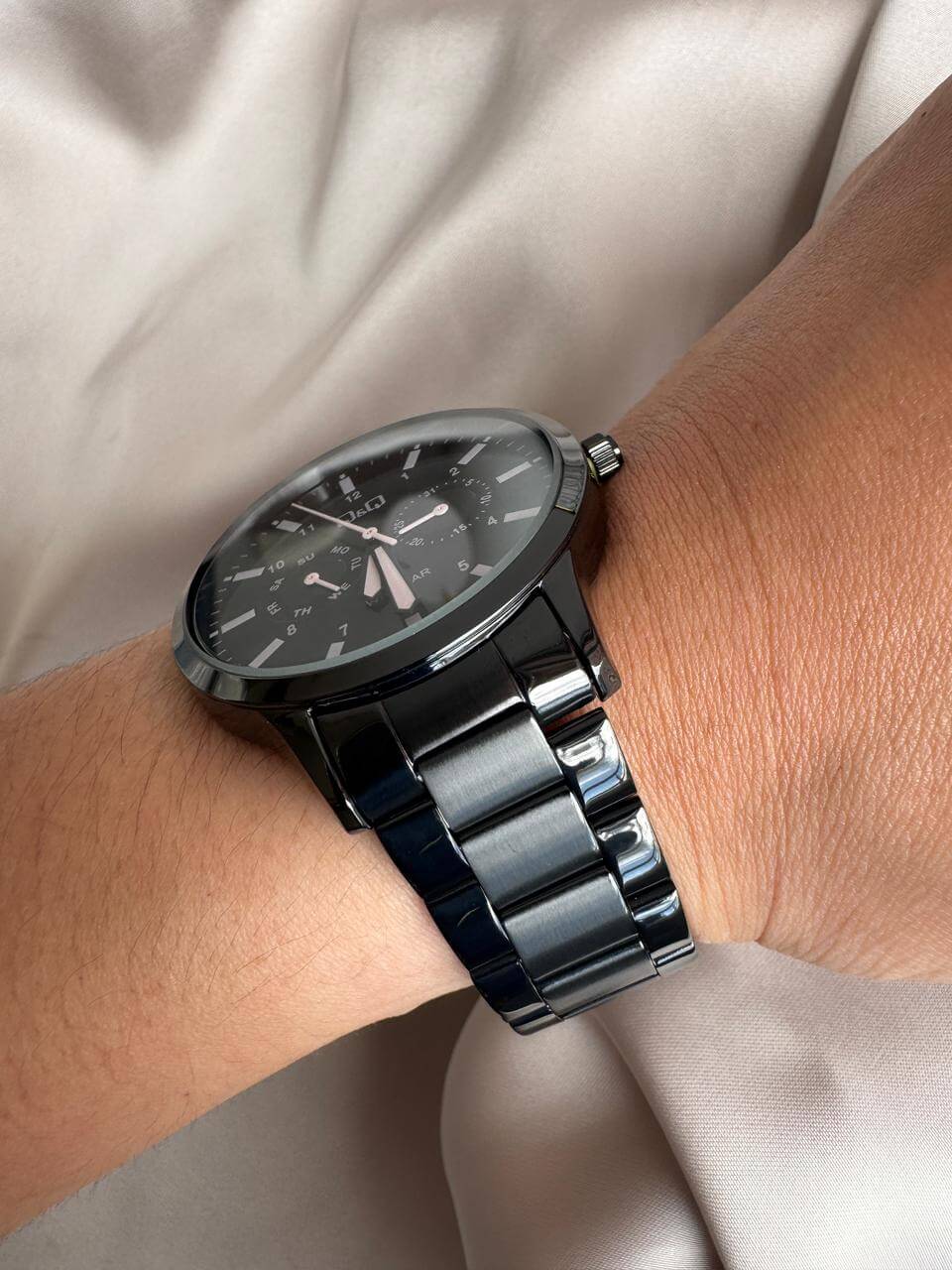 Q y Q ORIGINAL Unisex, incluye estuche, resistencia al agua: 5 BAR Water resist (NO SUMERGIBLE) 12 meses de garantía, funciones: Hora análoga: 3 manecillas, horas, minutos, segundos, Calendario: Numero del día, nombre del día. Diametro de la caja 4.2 cm, Ancho del pulso 2 cm, Material del reloj: caja en acero horneado y pulso en acero inoxidable.