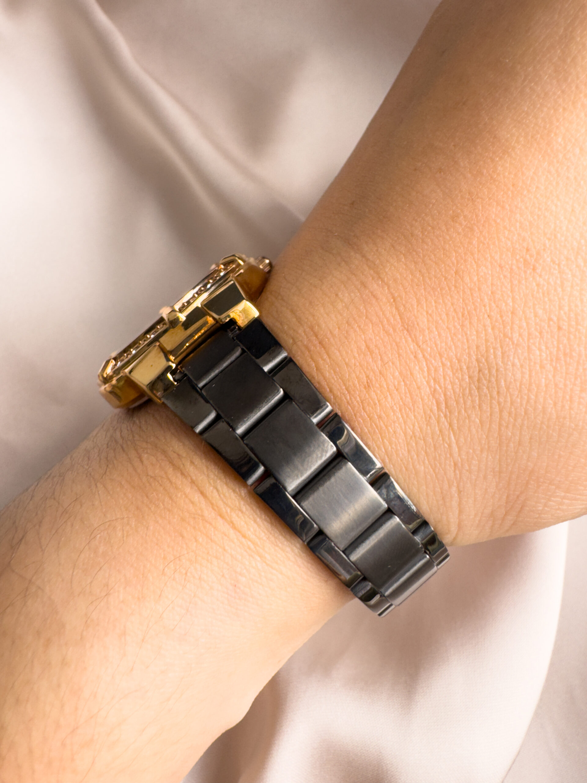 Reloj Q&Q Unisex negro y oro rosa con calendario