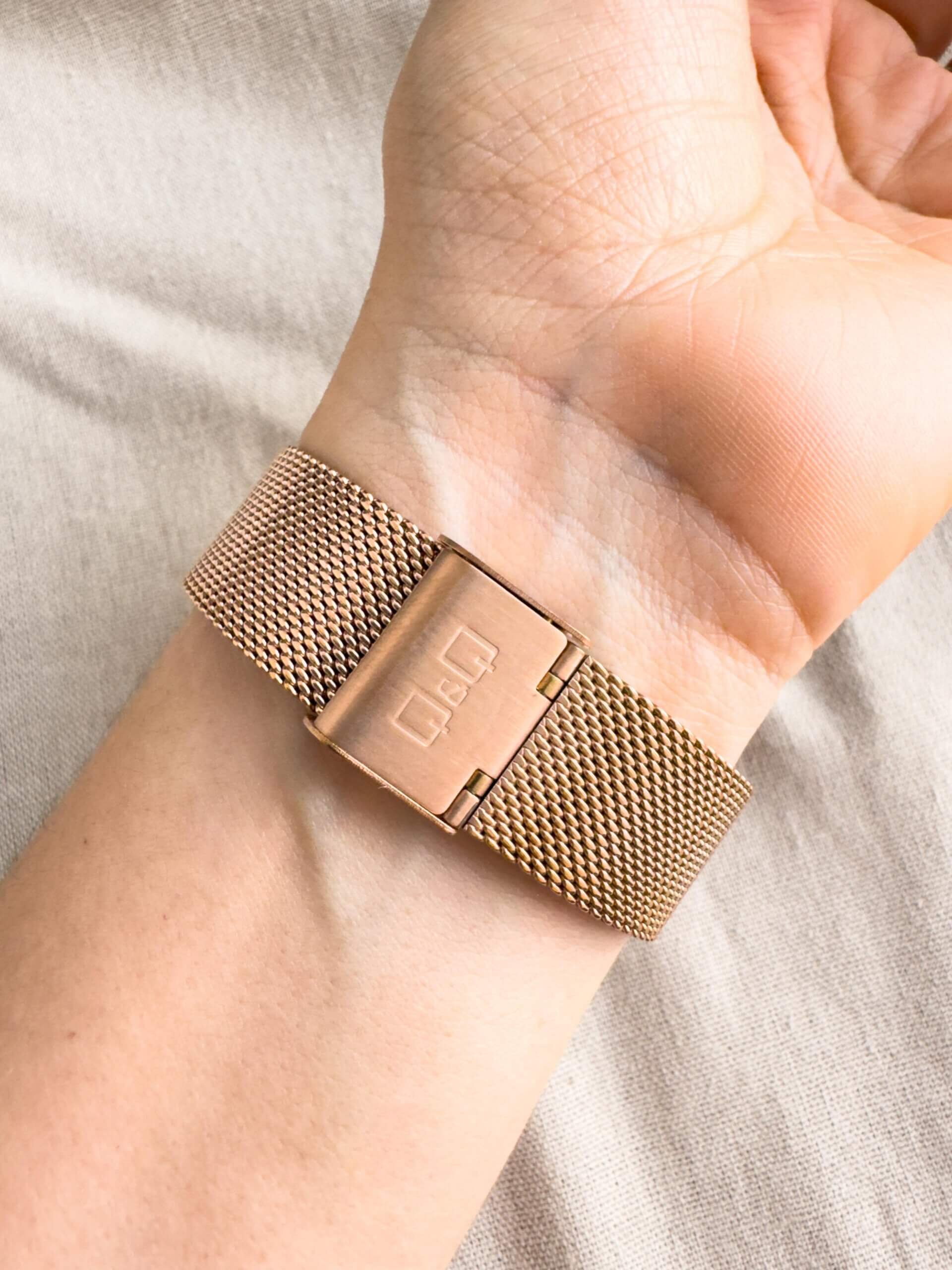 Reloj Q&Q Unisex negro y oro rosa con calendario