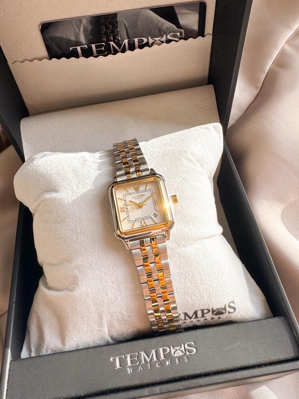 TEMPUS ORIGINAL , incluye estuche, resistencia al agua: 5 ATM Water resist (NO SUMERGIBLE) 1 año de garantía, Hora análoga, minutos, segundos, Calendario: Numero del día, ancho de la caja 24 MM, largo de la caja 22 MM , Ancho del pulso 12 mm Material del reloj: Caja y pulso en acero inoxidable, cristal zafirado
