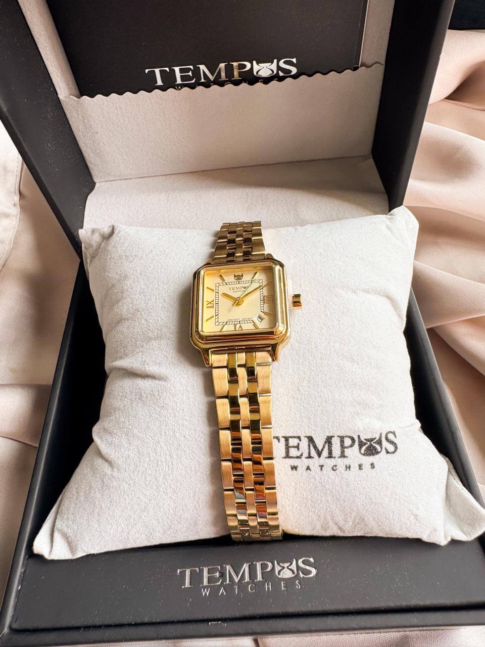 TEMPUS ORIGINAL , incluye estuche, resistencia al agua: 5 ATM Water resist (NO SUMERGIBLE) 1 año de garantía, Hora análoga, minutos, segundos, Calendario: Numero del día, ancho de la caja 24 MM, largo de la caja 22 MM , Ancho del pulso 12 mm Material del reloj: Caja y pulso en acero inoxidable, cristal zafirado