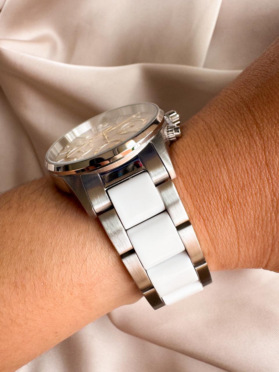 YESS ORIGINAL Mujer, incluye estuche, resistencia al agua: 5 ATM Water resist (NO SUMERGIBLE) 1 año de garantía, Funciones: 3 manecillas, Hora análoga, minutos, segundos, Calendario: Numero del día, Nombre del día, Hora militar: 24 horas, Diámetro de la caja 35 MM, Ancho del pulso, 15mm Material del reloj: Caja en Acero y pulso en acero y pasta
